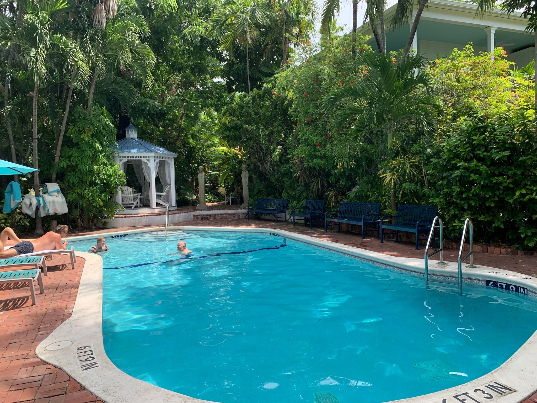 The Gardens Hotel en Key West, un hotel con jardines tan exuberantes, tan tropicales, tan acogedores, que ni siquiera querrá salir para explorar el resto de Cayo Hueso. De hecho, hemos pasado días en el jardín relajándonos junto a la piscina y nuestro lanai privado sin siquiera poner un pie en el bullicio de Duval, ¡y le prometemos que está perfectamente bien!