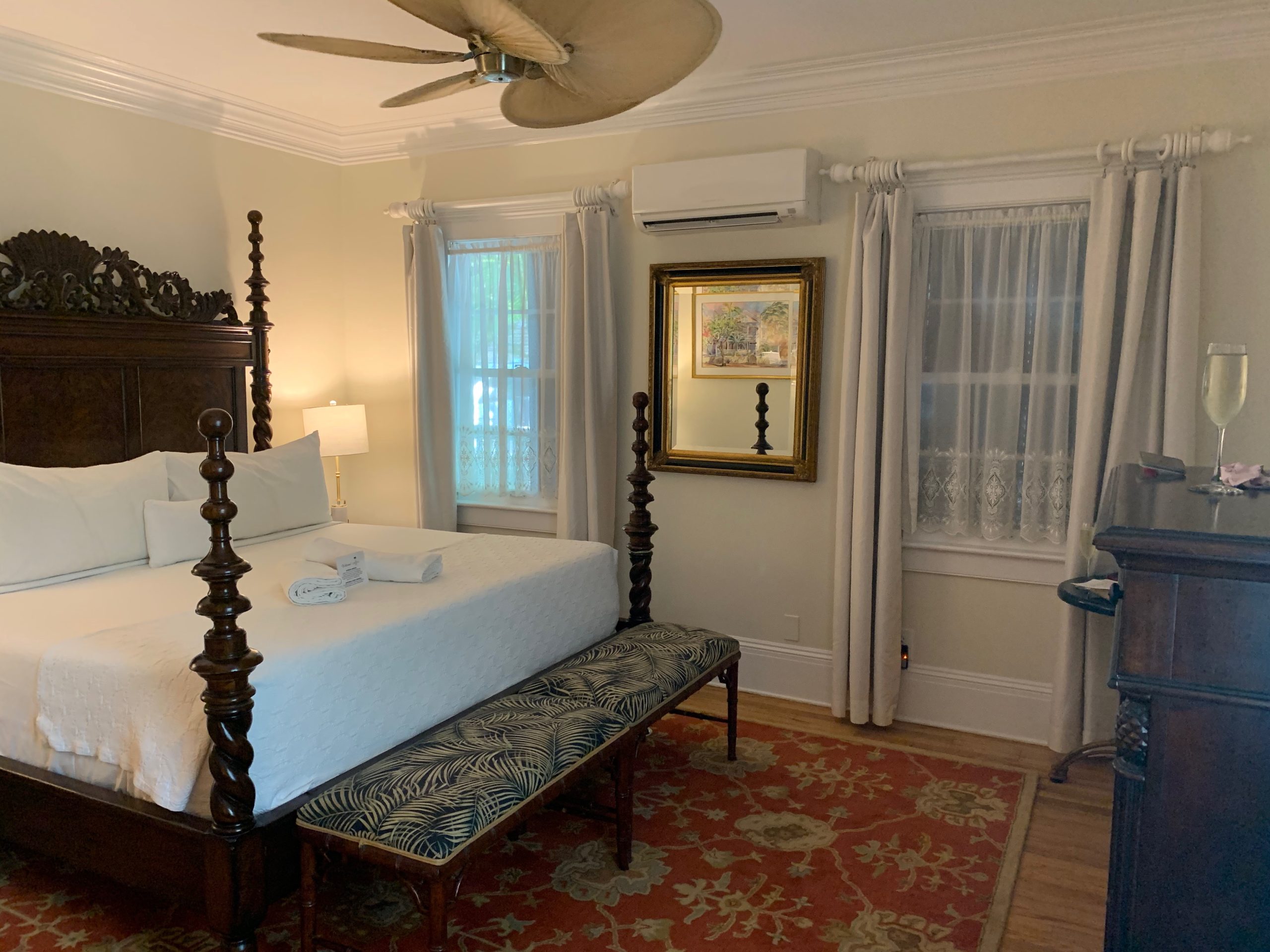 Las habitaciones son elegantes, cómodas, acogedoras y cada una viene con un lanai privado con dos sillas de patio grandes para disfrutar de la cálida brisa de Florida. Tome una copa de champán de cortesía a su llegada y relájese mientras espera que se ponga el sol antes de salir a cenar en Duval.